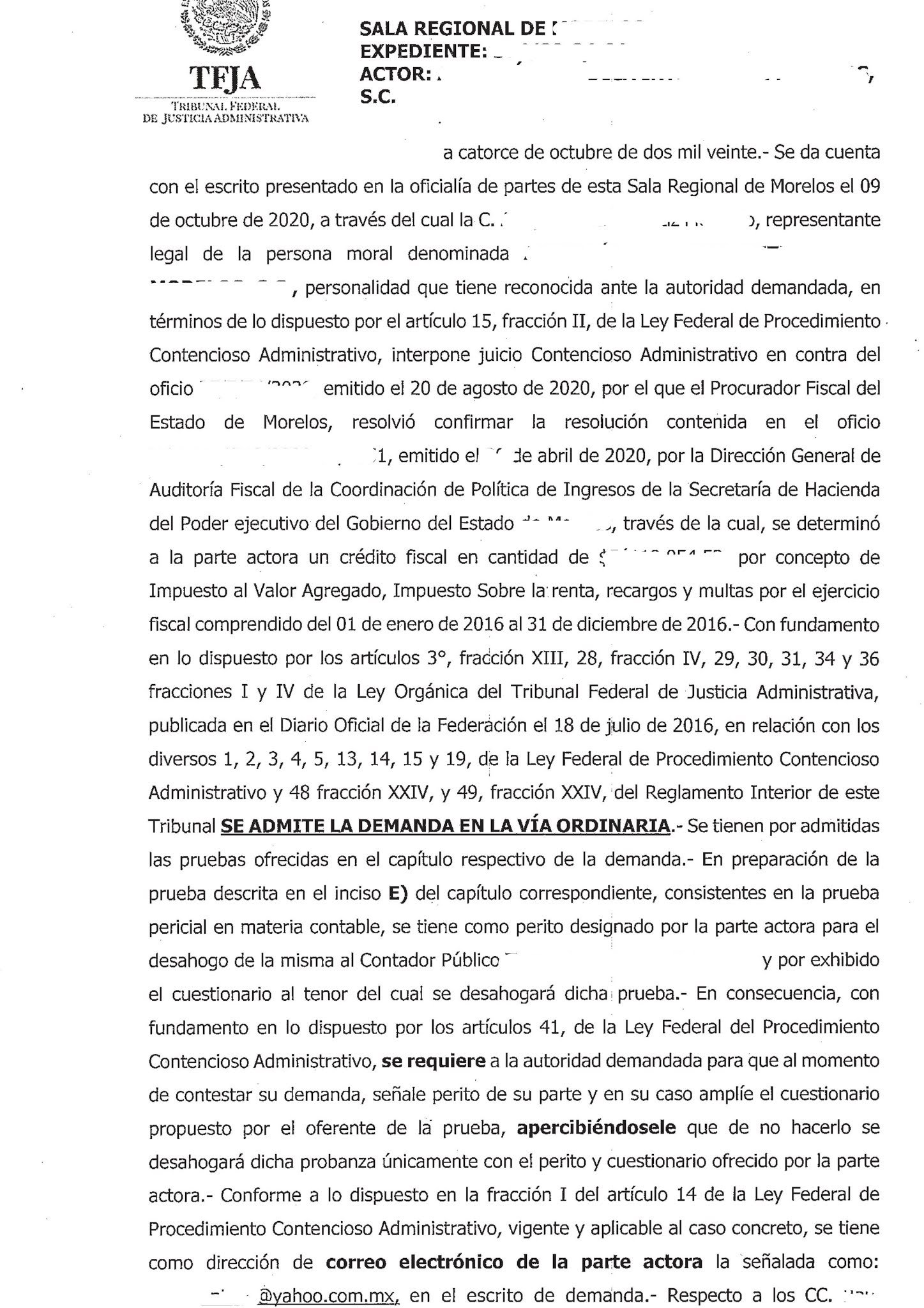 Te presentamos un auto de admisión de una demanda de nulidad en contra de una resolución que finca un crédito fiscal dictado por el Tribunal Federal de Justicia Administrativa, conforme a la Ley Federal de Procedimiento Contencioso Administrativo, via ORDINARIA TRADICIONAL.